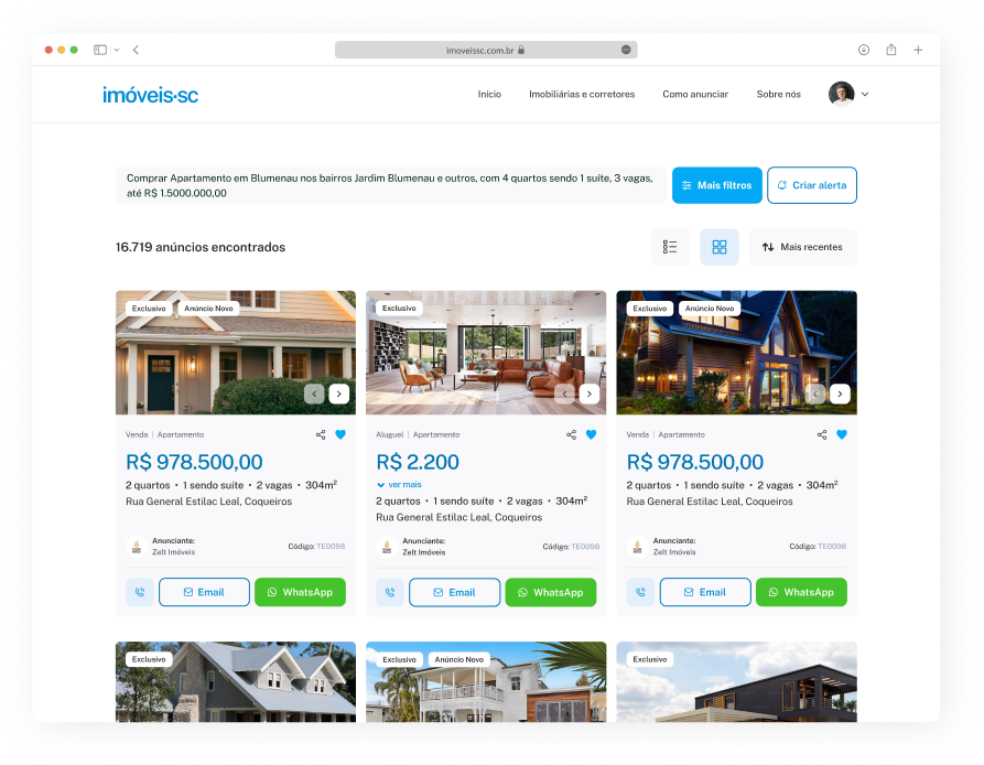 Somos especializados no mercado imobiliário catarinense, conectando sua oferta diretamente com um público que busca imóveis na região.